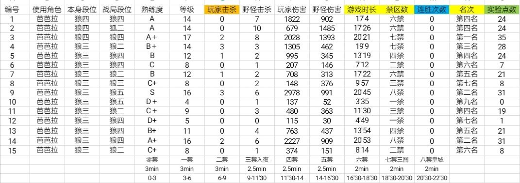 所以,我推断在三个数据每个量(击杀数+、禁数-、名次+)相加的基础上,如果不够相应名次最低保底则增加至最低保底,若超过了相应名次的最大值则减少至顶峰。