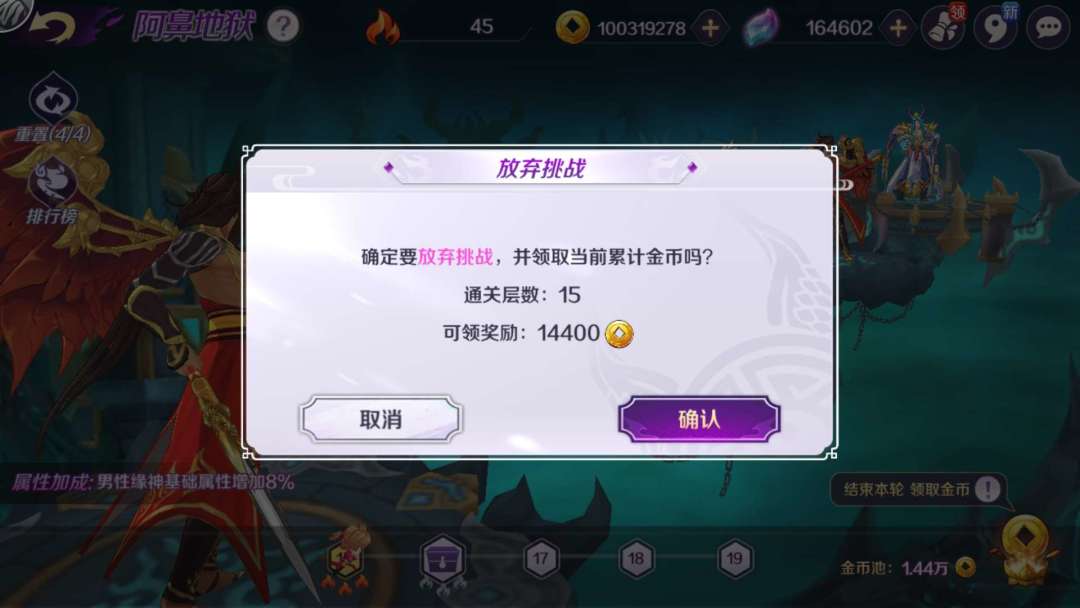 4. 15级才可进行次数重置,通关15层才可放弃挑战领取奖励