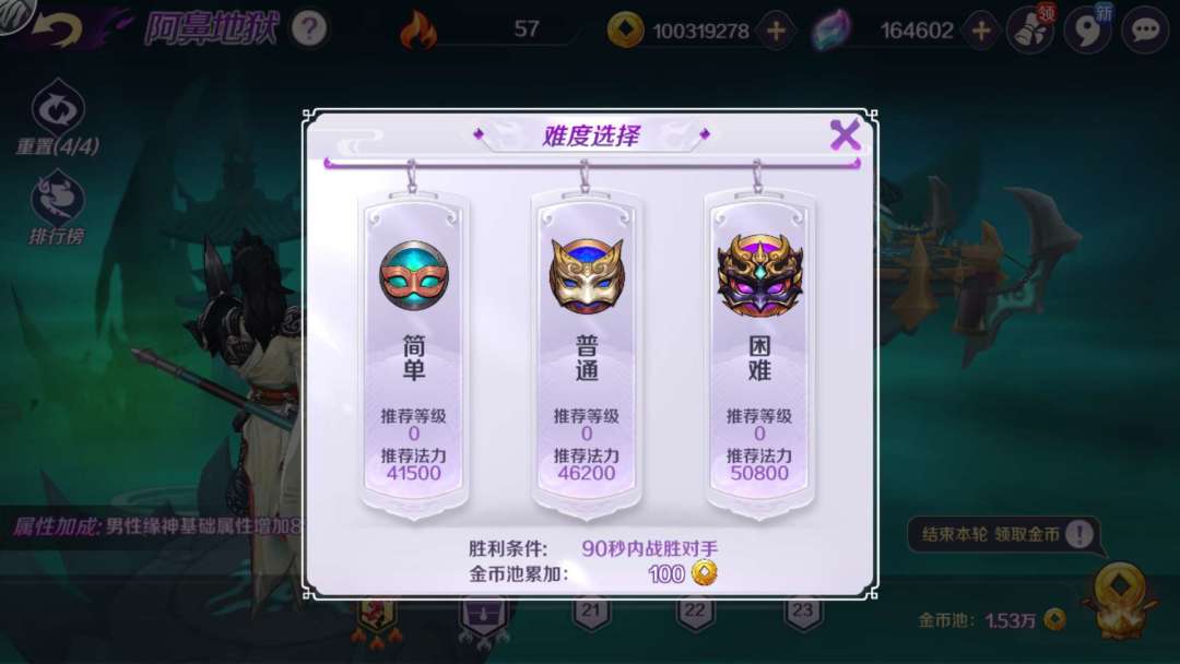 每层阿鼻地狱都有简单、普通和困难3个难度选择。仙友们可以选择最符合自身战力的难度进行挑战。战胜不同的难度,可以获得不同数量的地狱之火,搜集地狱之火的数量越多,将更有机会冲刺更高排名哦~