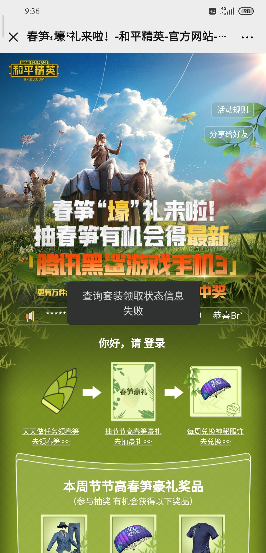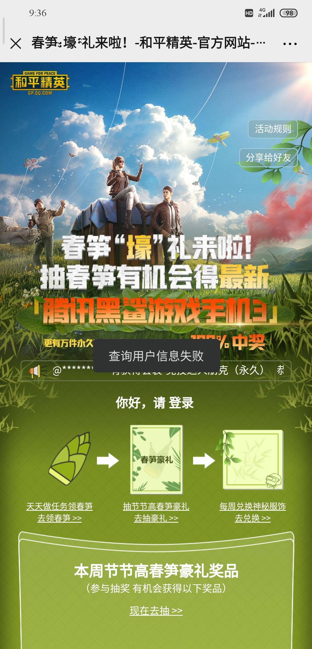 今天早上,很凉爽的风,我不见它,已是一个晚上,我像往常一样点开微信和平精英公众号,参加抽奖活动,可一点进去却显示查询信息失败,我忐忑着,继续点,还是失败,我似乎从头上浇了一盆冷水,但是,又有什么法子呢?