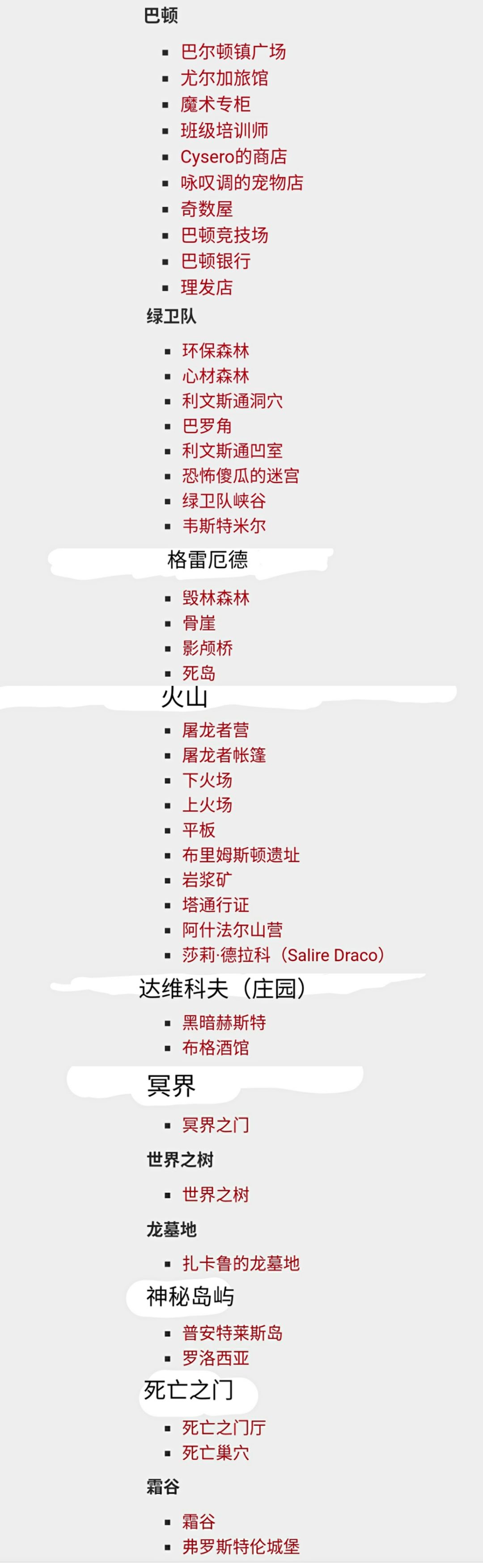 冒险任务大地图以及小地图的中文对照,做的不是很细致,也不是很准确的翻译,仅用来参考,也是为了我之后的攻略贴备的查阅材料!
