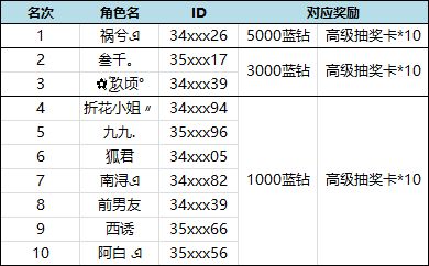 以上是活动榜单前十的玩家,对应活动奖励发送至获奖的id邮箱中,注意查收喔~