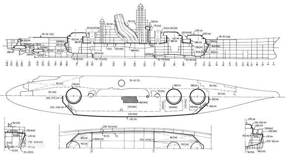 不过非核心区的储备浮力保护真的不足,几乎裸奔。舰上的发电量&水泵不足,损管不好整。分舱数量与吨位之比甚至不如长门(好像)。这对于其如此庞大的吨位,显得不应当。放宽一点吨位完全可以实现完整的艏艉次装。