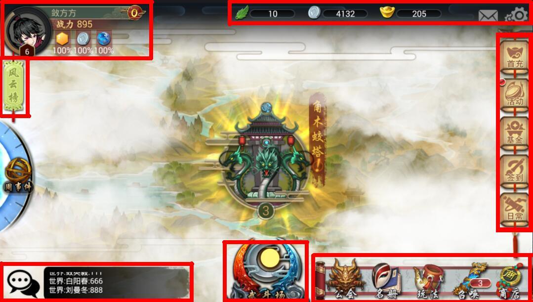 正中间为武斗场,需要玩家等级达到10级之后才可以进入。