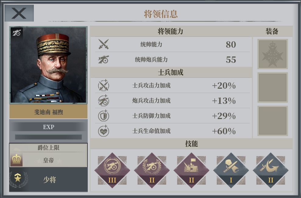 2、将领舍尔、福煦的爵位上限增加至皇帝;