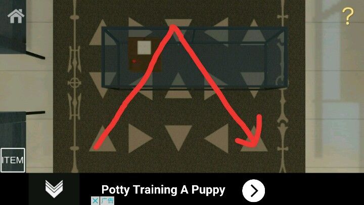 后退左转对柜子上的机器投币,得饮料,对冰冻用的盒子倒饮料再放红锁门里的冰箱里冰冻,拿出来得到冰块。 后退右转对大门左边画后的机器右上角口子用冰块,再点左边输入,注意看上面的符号,可知要把图4左转90°输入,即左,下,右,上,左。输入后得绿钥匙,去对电脑桌左边抽屉使用得石块,注意里面还有提示:左上角为实心,其余空心。 后退去看大门左边的画,之前沙发墙角的提示与此有关,是从粉到紫的方向上四个绿三角的朝向,可知顺序为左下,右上,左上,右下。后退去蓝锁门给保险柜装上石块,注意保险柜上三角板所指的方向结合前面的顺序可知要按石板位置的右上,左下,右下,左上。打开得十字螺丝刀。 后退右转点大门左边木盒用十字螺丝刀打开,得一字螺丝头,注意点移开的木盒盖子得图5
