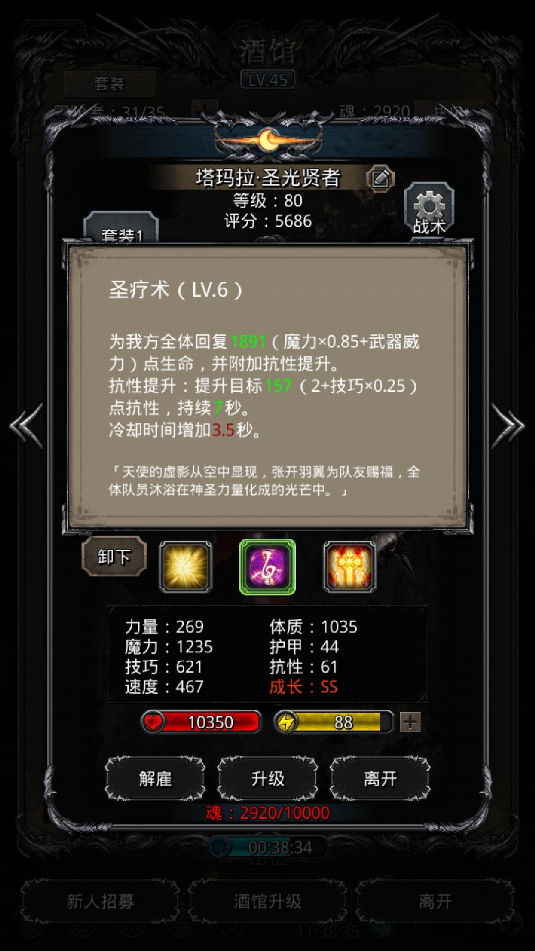 巫医和祭祀的奶量建议不要再低了,我每次都是刚好奶满,巫医一定要先发!起手就奶自己,然后祭祀,交替奶。输出的话我是两分11秒打完,应该是ok的,古精灵的杖子蛮好用的,输出不够的建议使用。