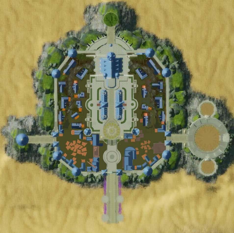 下面是当前阶段设计的布局图,最终上线看到的版本肯定和现在布局还会有很多区别,这座占地面积6万平米的城市坐落于整个大陆最西侧的银月岛,是西部大陆玩家出生地最近的一座大型城市,也是西部大陆唯一一座保存完好的大型城市,西部大陆的玩家将以此为圆点,探索更多更广茂的世界,随着时间的推移,这个大陆上会自然的形成更多的规模宏大的城市成为新的玩家居住地