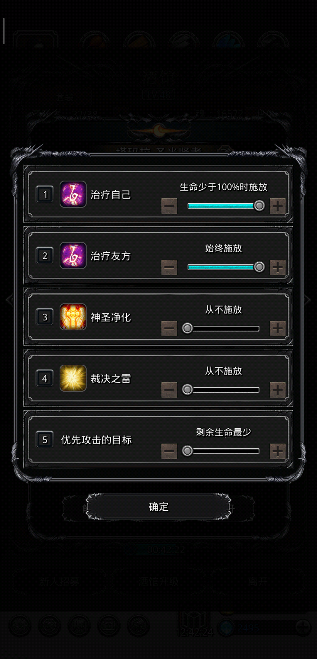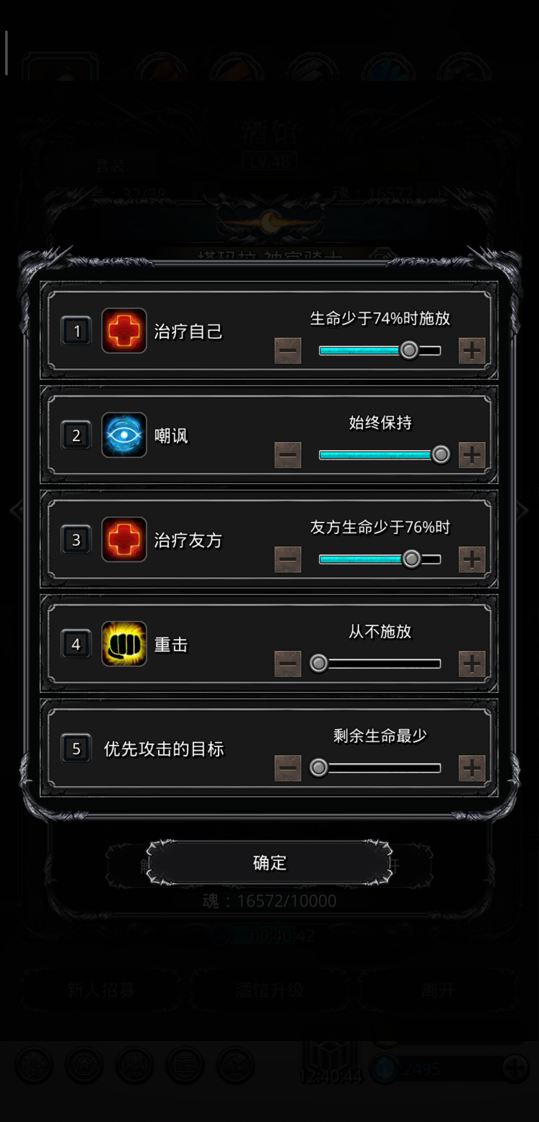 技能设置:始终嘲讽 75奶自己75奶队友(打boss时关嘲讽手动奶)