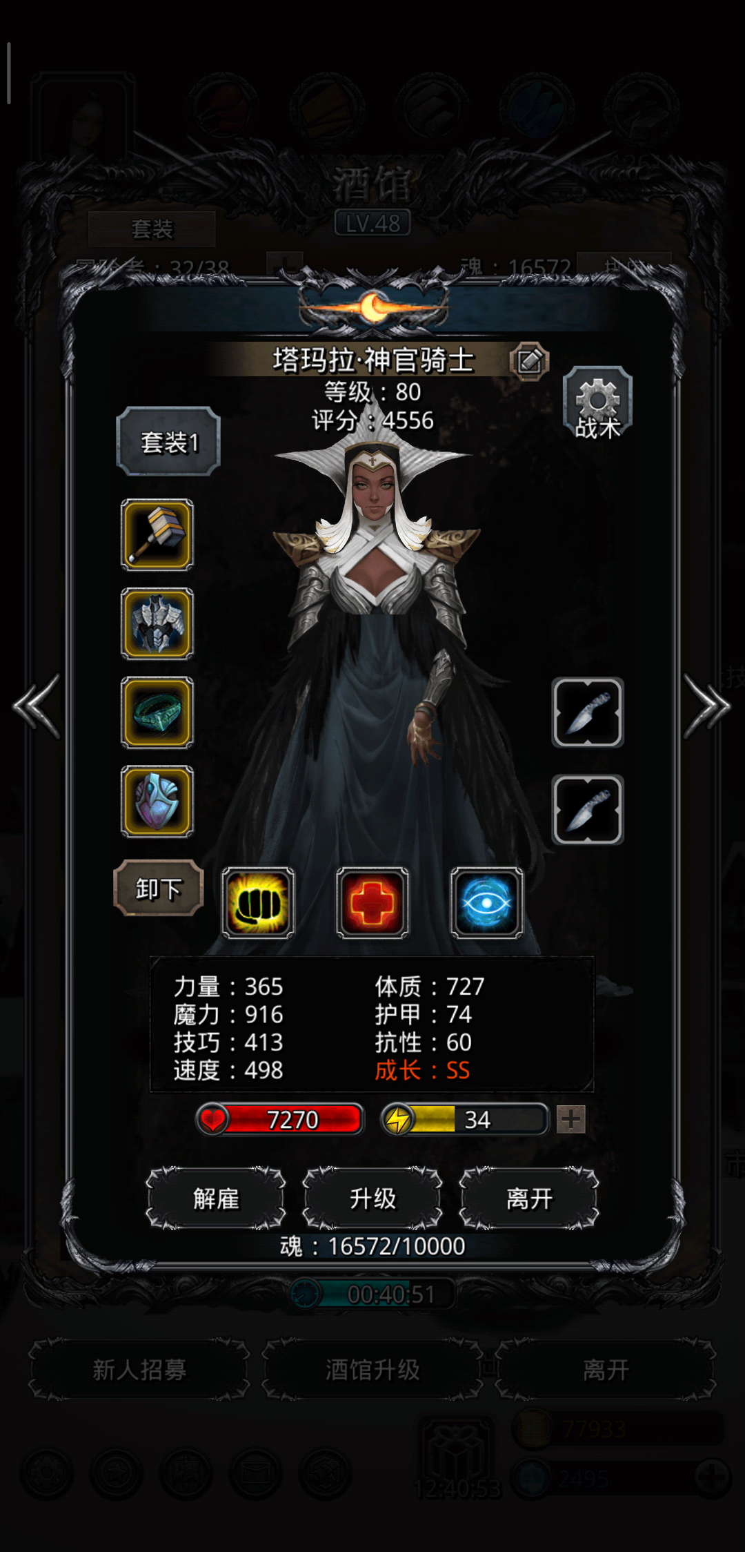 综上:34跳36的核心就是祭祀奶量要够,龙猎输出要够,圣骑的护甲buff和奶量保证祭祀能始终不重伤。掌握核心思路后奶量不够就提升奶量,输出不够就多升几级龙猎。