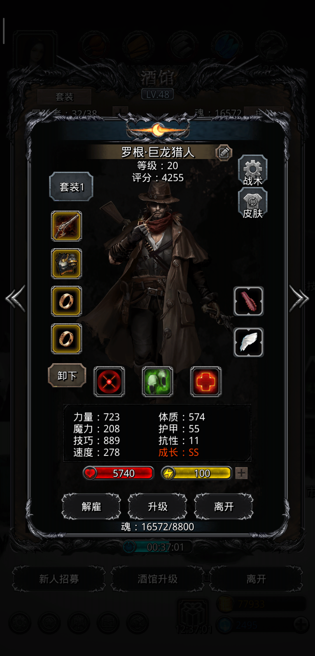 龙猎力速比小于2.6可以在重伤被拉起后使用1技能2次