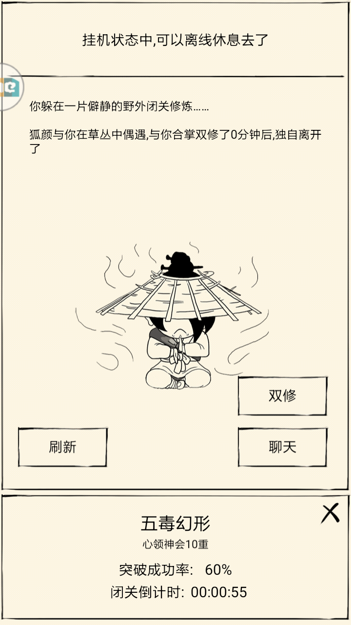 这一天,你兴高采烈地准备突破青一,进入萌新底层,下午找好双修伴侣后,晚上一看,