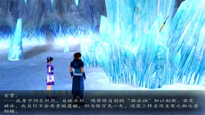 我们初次在游戏中接触到玄霄,是天河一行人拜入琼华派之后。某一天,望舒剑受到羲和剑的感应,将天河菱纱带入了后山的一处禁地,而玄霄就被冰封在里面。