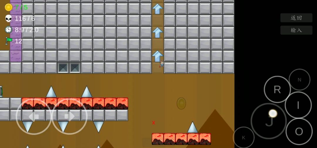 我们进入第三世界后是在左边传送门,END关卡在右上角,如下图所示