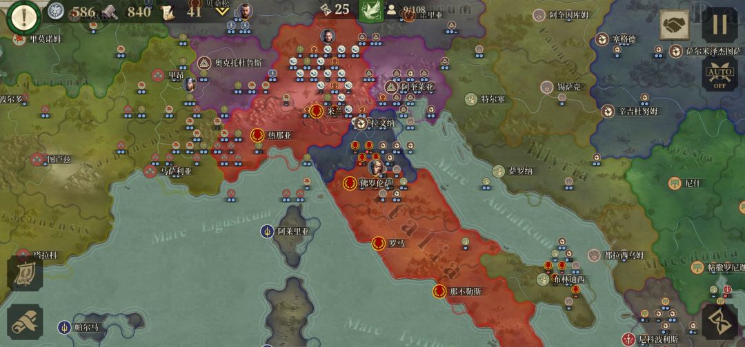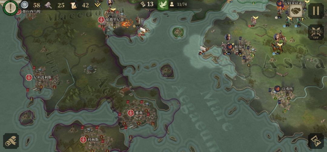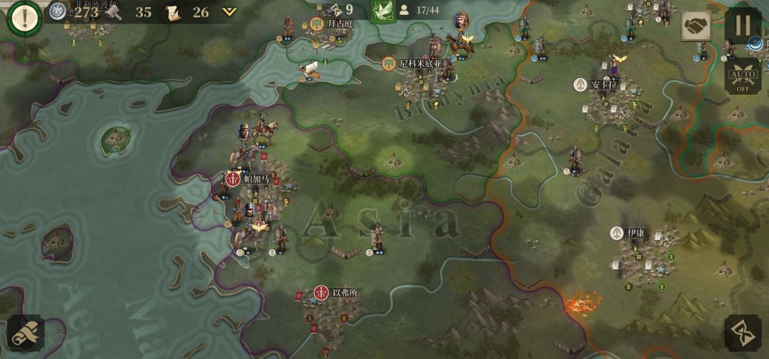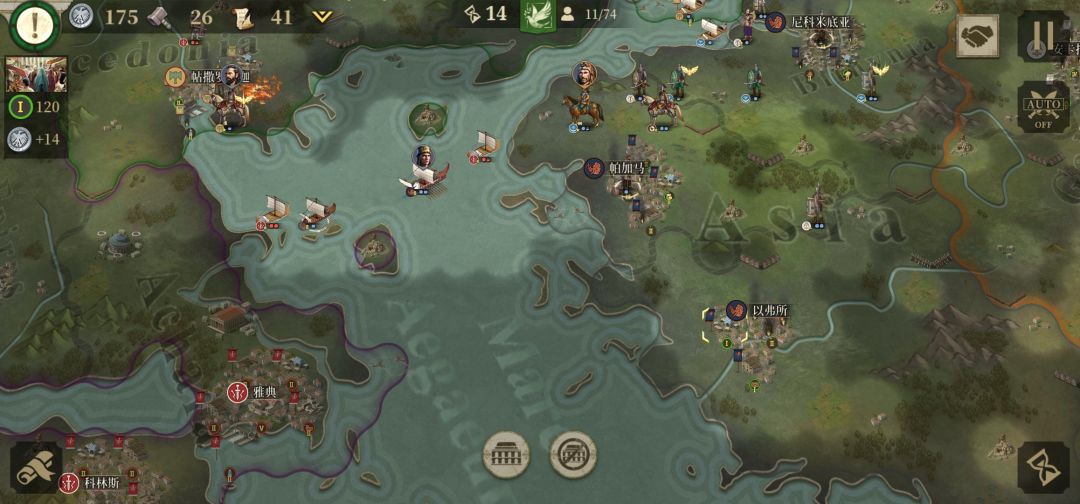 小结:爆破罗马本土拉文纳.本回合由于骑兵没有联动故没有占领帕加马