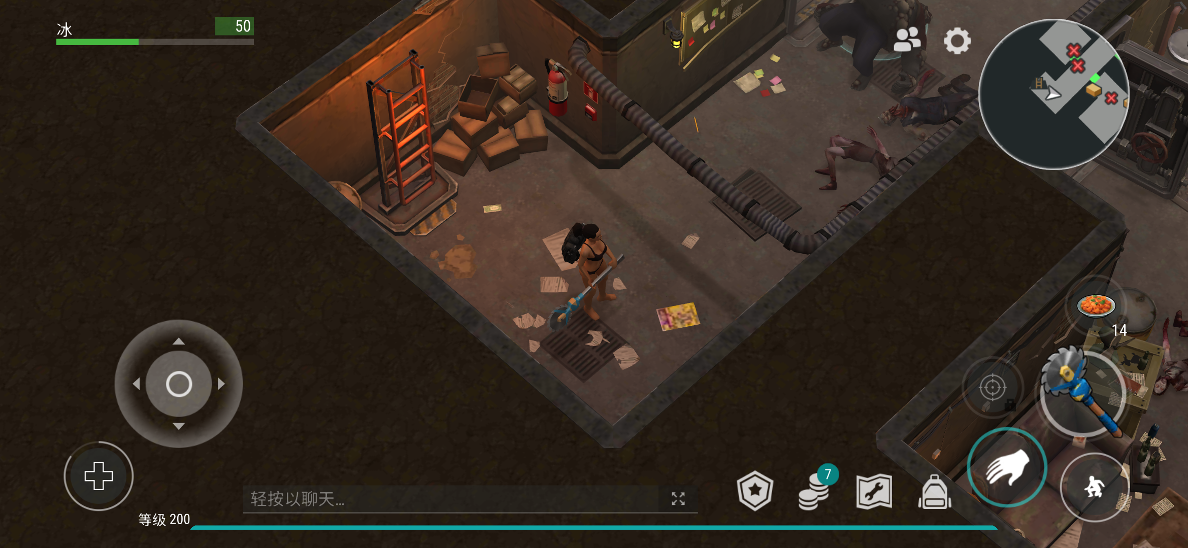 首先 我发现这里有个墙可以砍 上楼捡了点垃圾做了个斧头