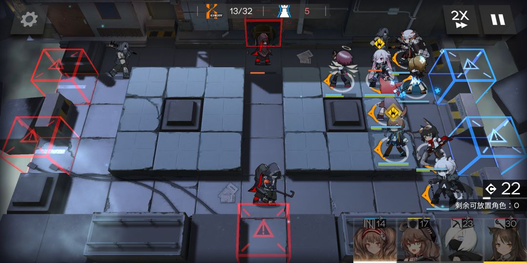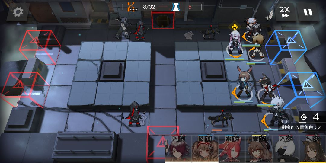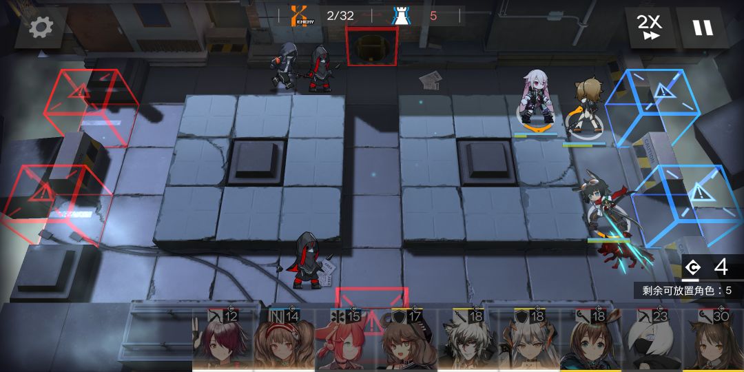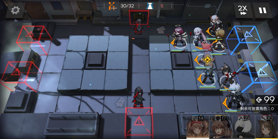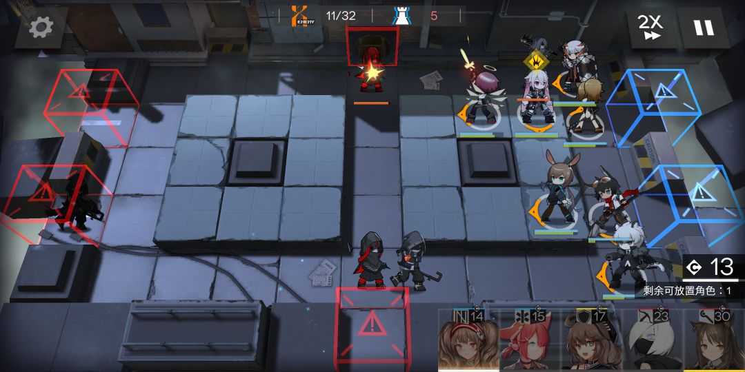 那两个术士会在中间停下,所以先建到后面躲着,攒费就行了。