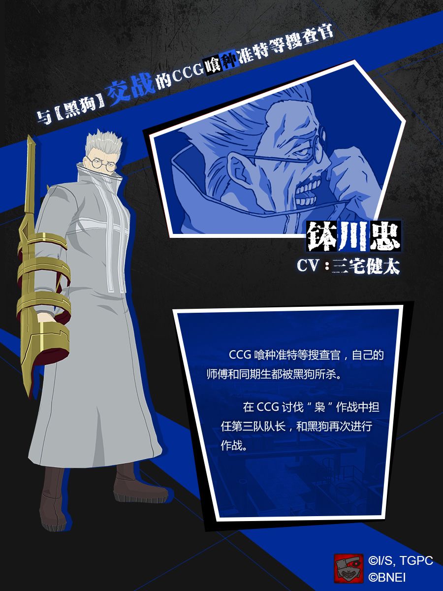 大家在第一季结尾的最终战中,有没有对一位一直用外套长领挡住脸部的喰种准特等搜查官有深刻的印象?他就是曾与喰种“黑狗”交战的钵川忠,在《东京战纪》中,再次面对杀死自己师傅和同期生的仇人,他将如何应对?