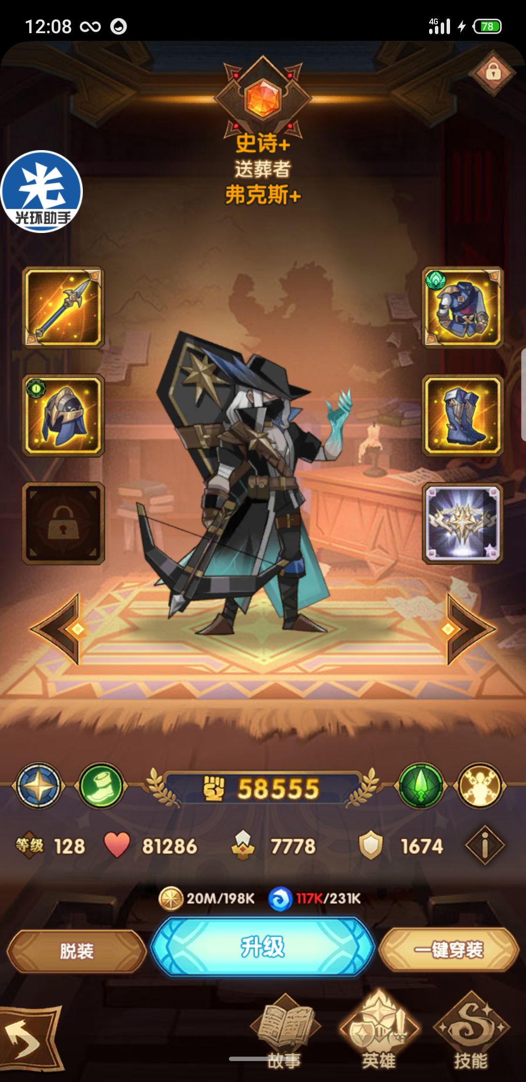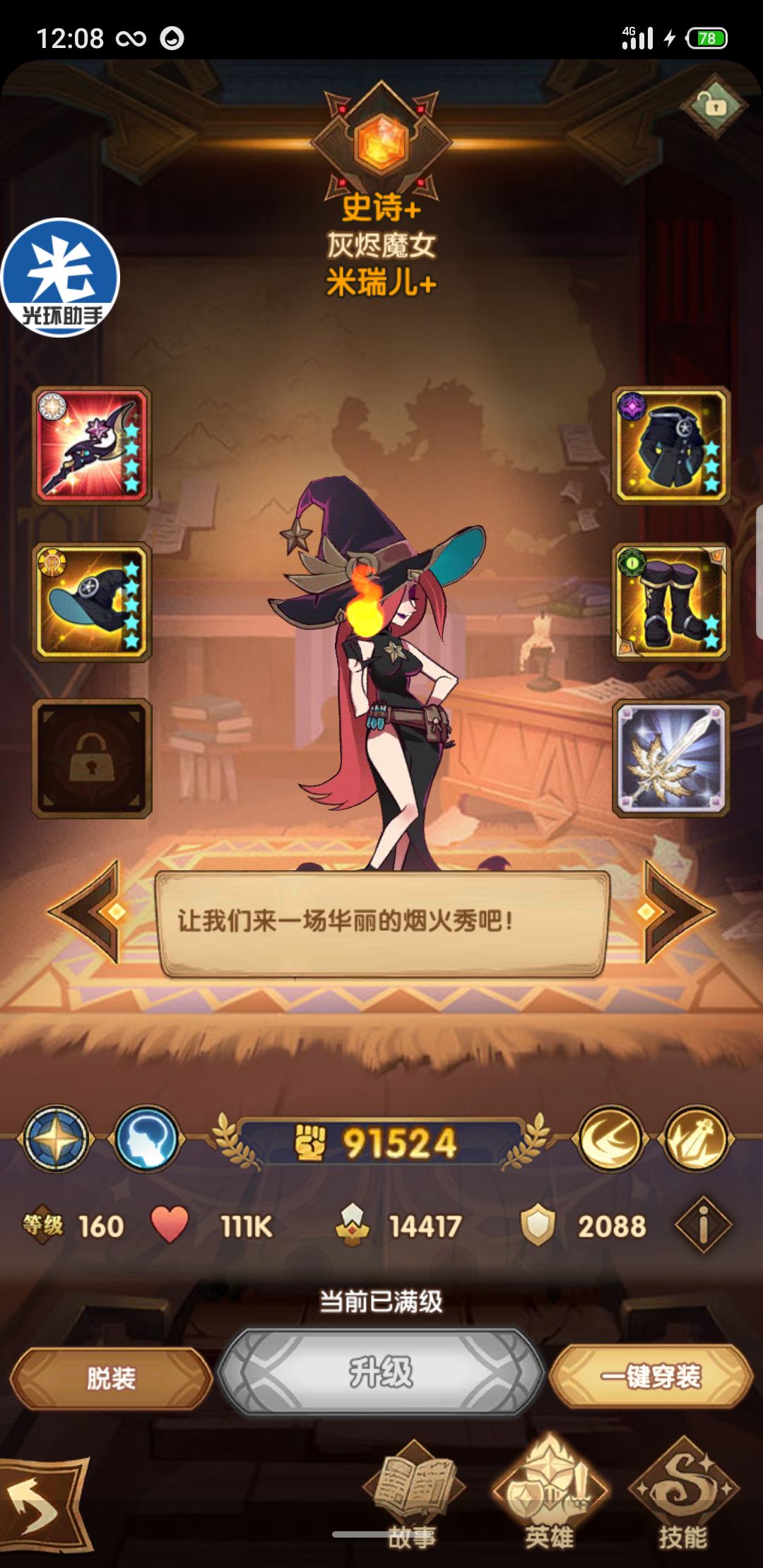 到了75级已经通关了14章,凭借着光盾的高等级不死保护火女女仆开大,此时火女也差不多到尽头了,下面是通关14章的装备参考