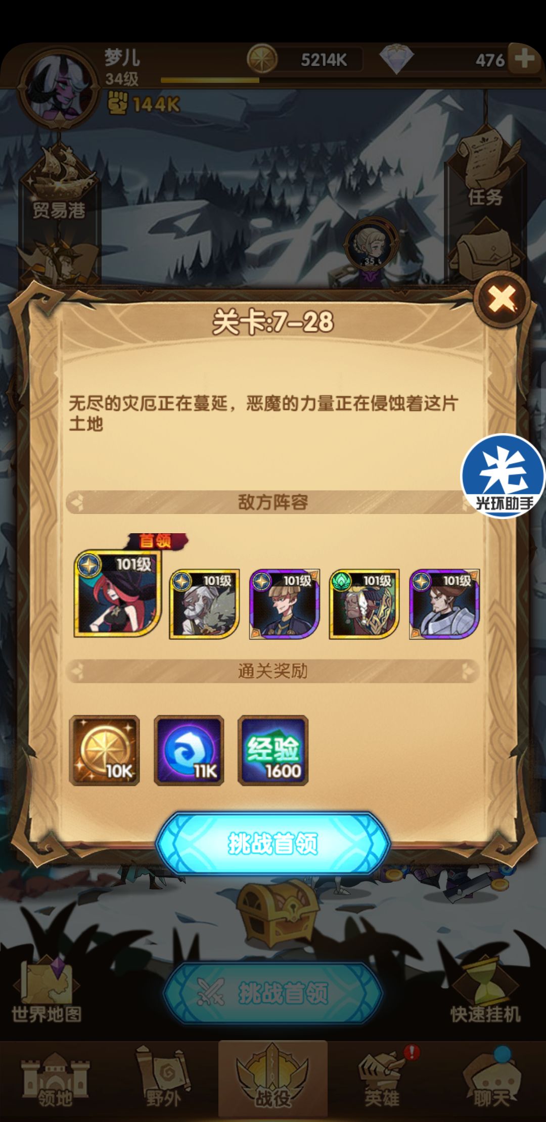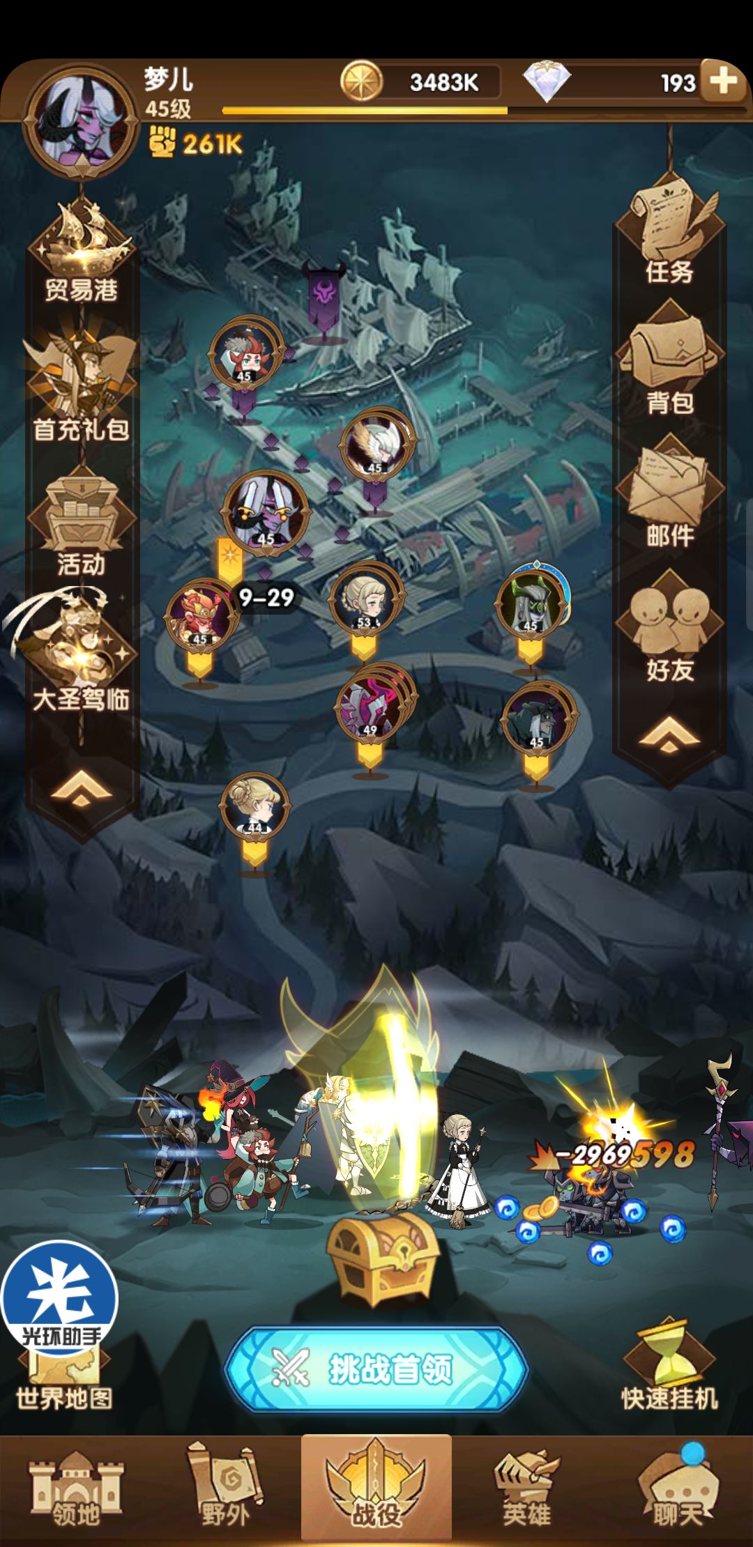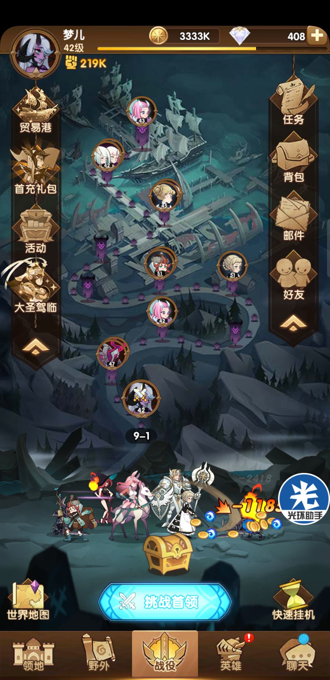 到了45级,火女金+后,很顺利的一路通关到达了9-29,等其他升到100级也已经来到了第十章了