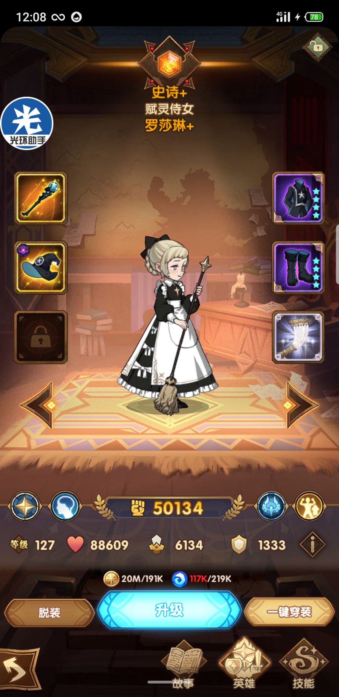 推关还有一个小技巧就是看着差不多打得赢可以适当性的升级装备,我从一开始到结尾都在升火女的装备,换了新装顺便可以给商人女仆继承,虽然有点坑金币