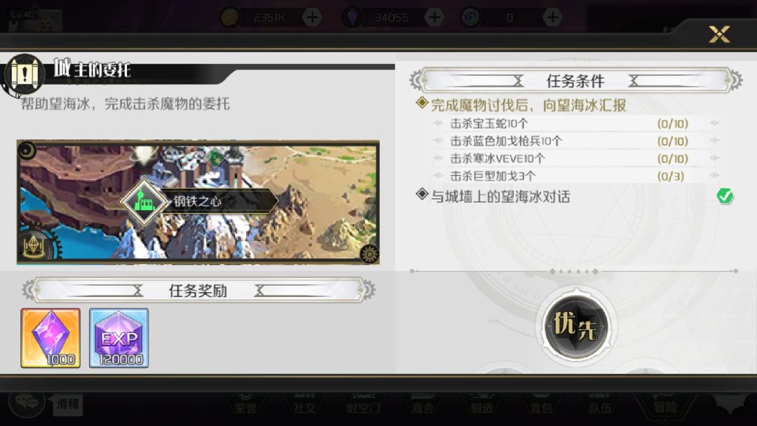 任务接取地点:钢铁之心城墙,不可导航接取。