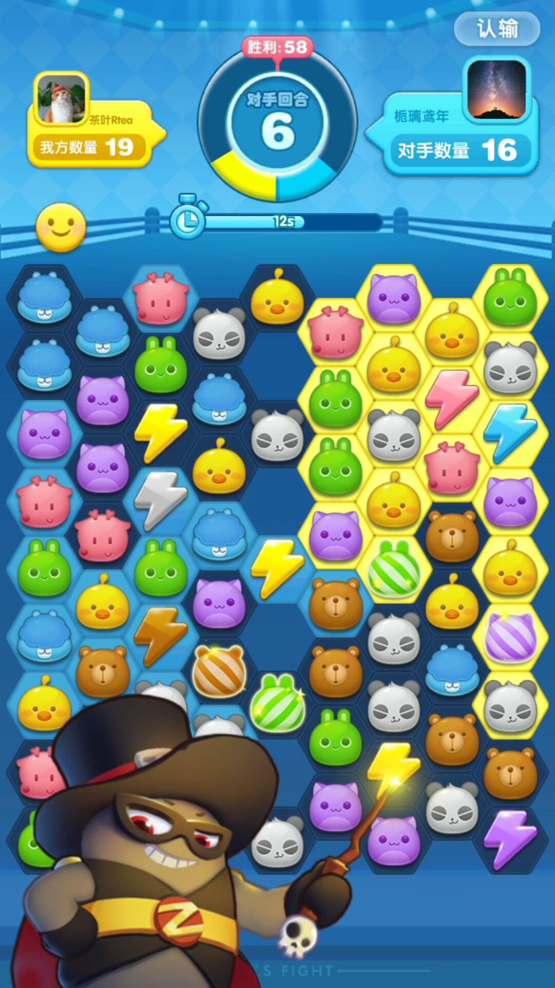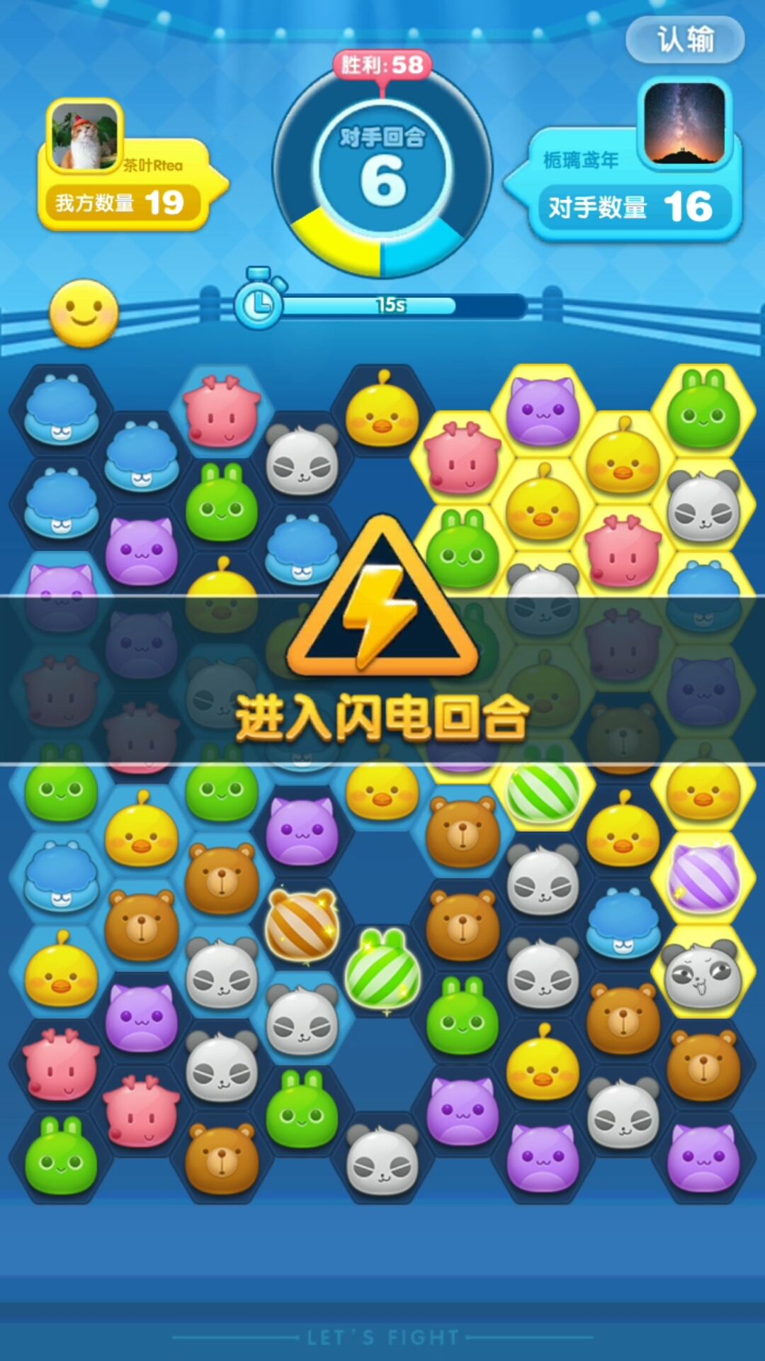 进入PVP模式的玩家,在匹配到对手后,对战双方会被分为蓝队和黄队,两队面前也会出现一个由六边形组成的大舞台,我们可以称它为“棋盘”。
