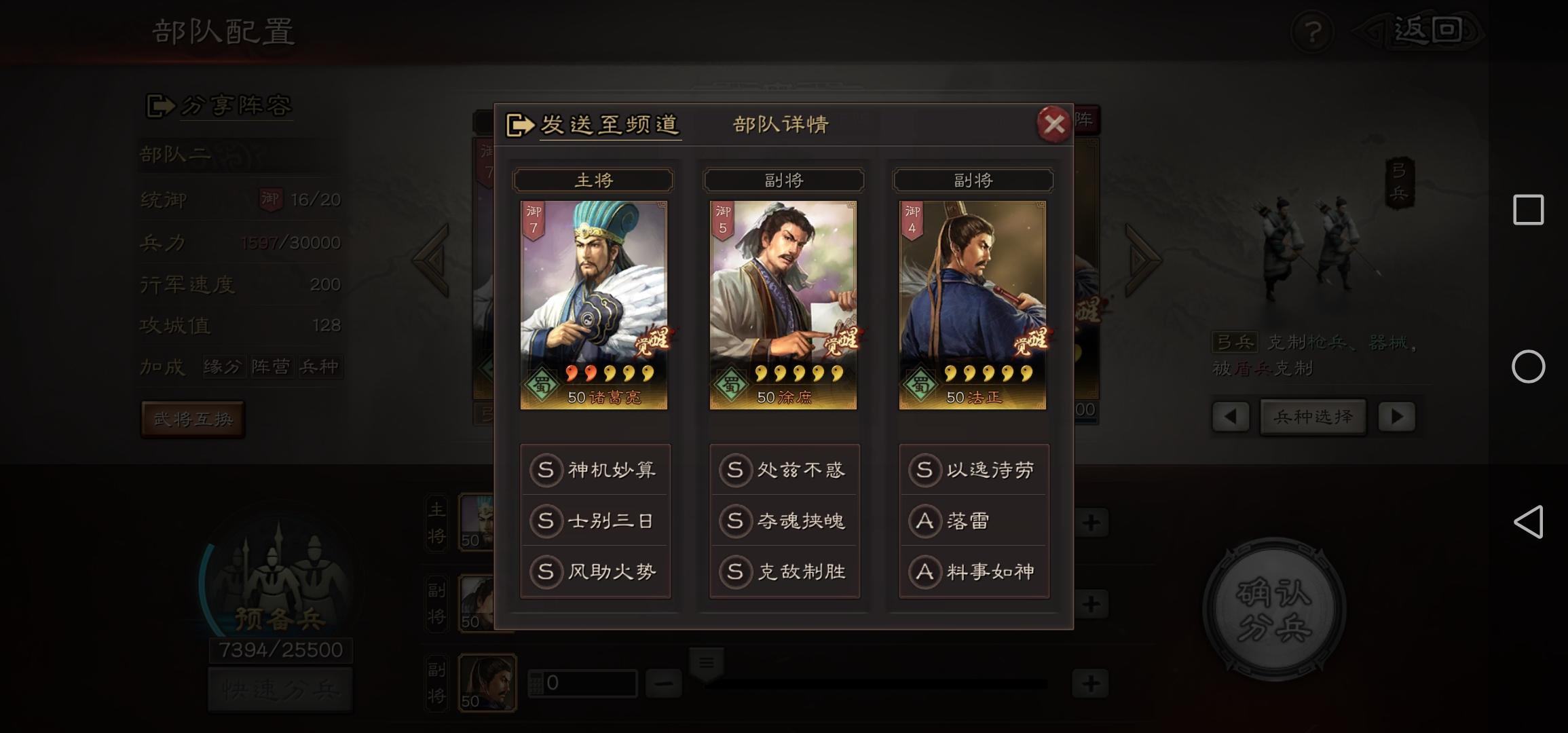 蜀智技能配的差不多了,老是不给力。。缺个白马义从的原因么。。拆还是继续留着培养。还是魏骑稳点。