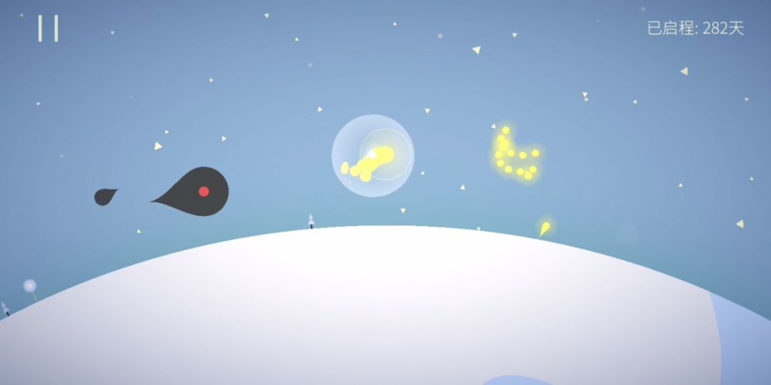 努力就是为了看不一样的更美丽的风景。每次新的场景出现都会给我惊艳的感觉,但是一旦被黑色追上,就会前功尽弃,从头再来,不过倒激起我的刷新记录的欲望。游戏就一直在手机里留着,闲着的时候就想起来玩一下,看看自己能不能走的更远。目前最高纪录是290天😝,还算是新手。附上几张美丽的截图~颜色超级好看!(觉得不足的地方就是音乐有点少就两首,而且操作太单一,被黑色追上就得从头再来,没有复活功能)