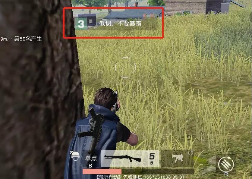 这句话一般会在决赛圈的时候出现,这时候决赛圈的人还比较多,队友们都不能确定周围还有多少对手,因此发来一句“低调,不要暴露”。这时候低调隐忍就很重要,我们可以先找掩体隐蔽,苟一段时间,等到人少一点再团队出战。
