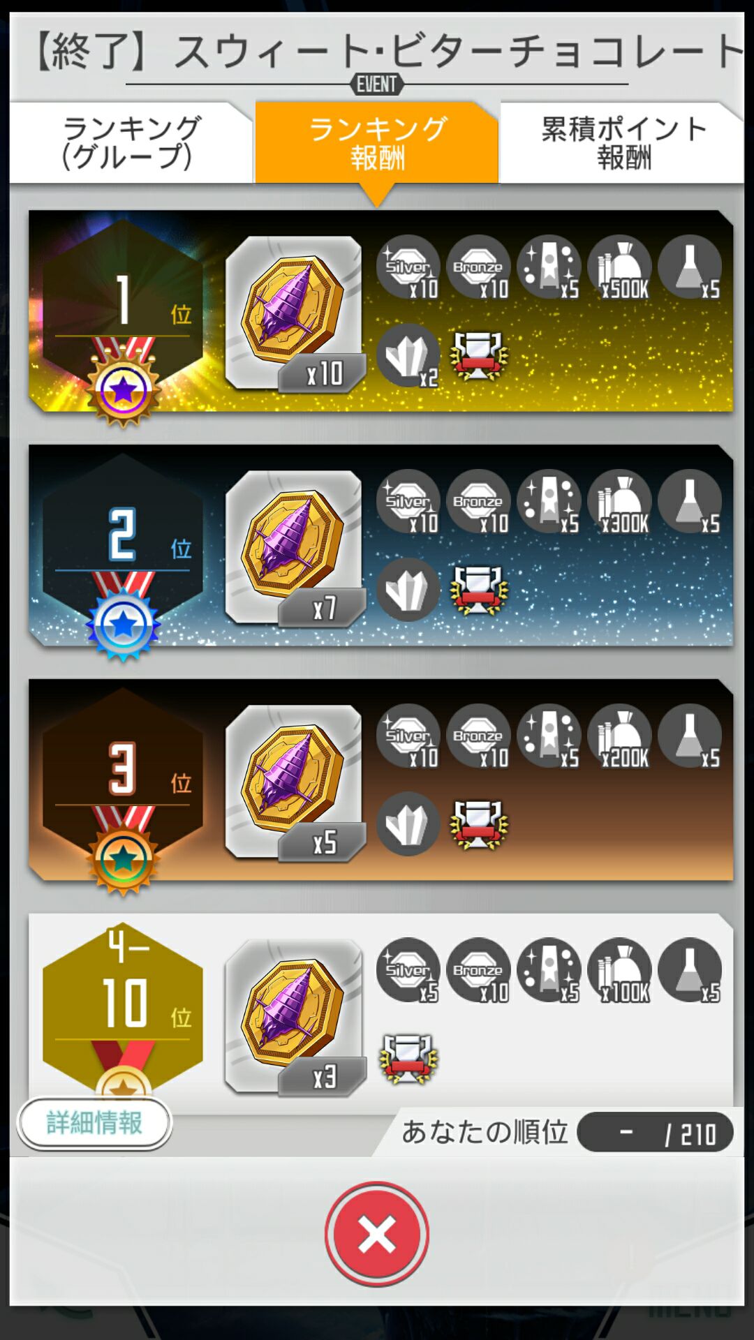 排位奖励,10以下下的不截图了,没有金币,有银币铜币钻石之类,像我们这些平民,尽量撑到前10有三个金币就好了,慢慢存,更有甚者可以靠pt慢慢存了,当然也存在铜币一发入魂的(欧吃矛)另外排位是分组的,万代没那么傻到让全体成员挤到同一组