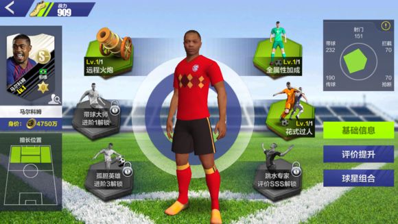 孤胆英雄:增加带球、射门属性。