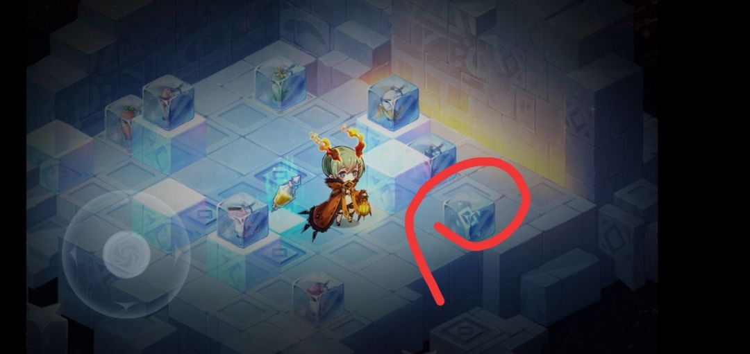 点击这个有图案的蓝冰块可以切换冰块进下一环节,和重置。