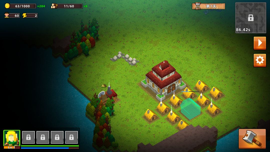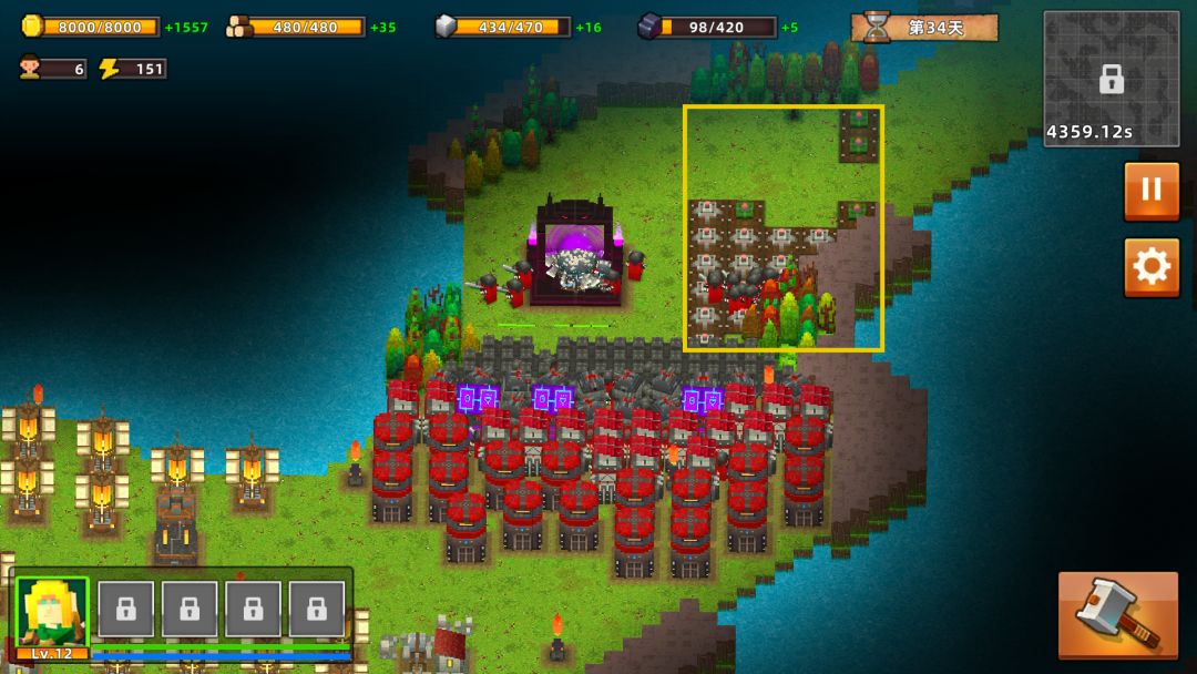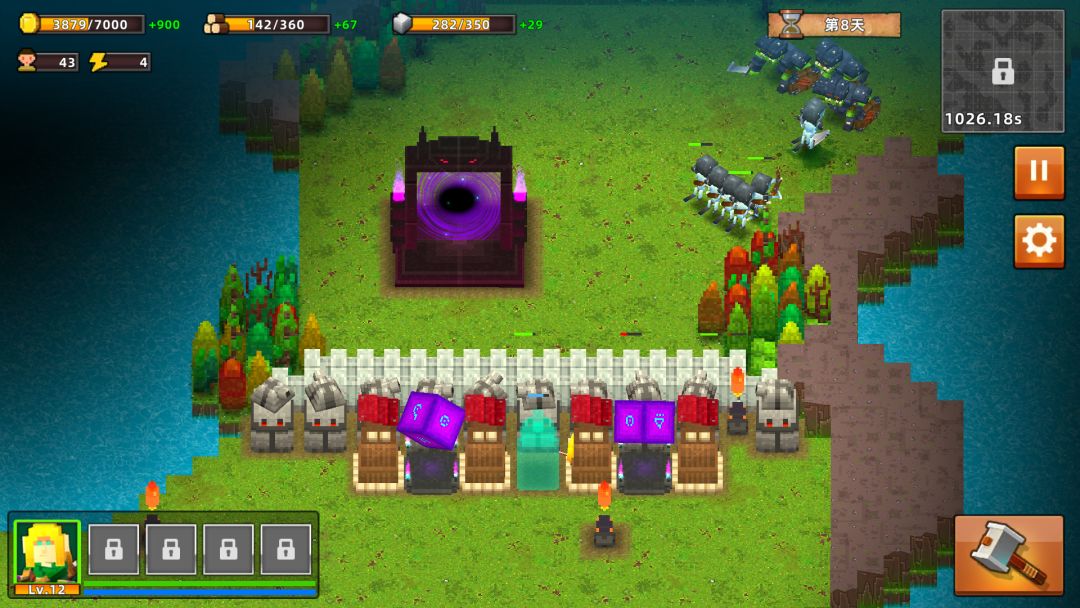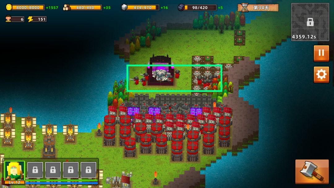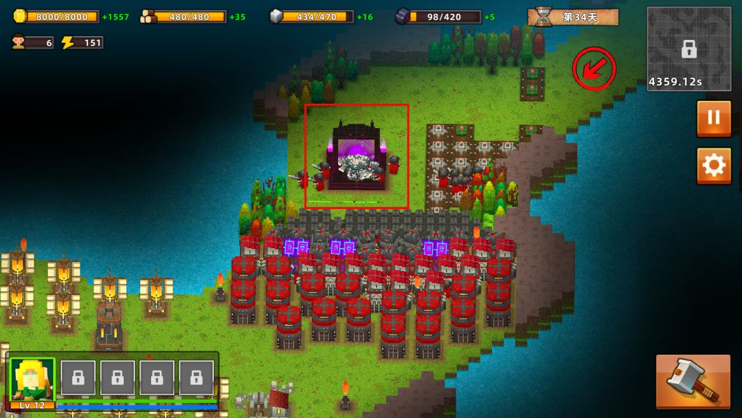 英雄外出探图(并负责防止哥布林进攻),在大本营周围设能量塔,建设建筑