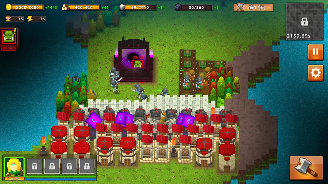 把防御塔和后面的建筑升级,怪也几乎打不到城墙了