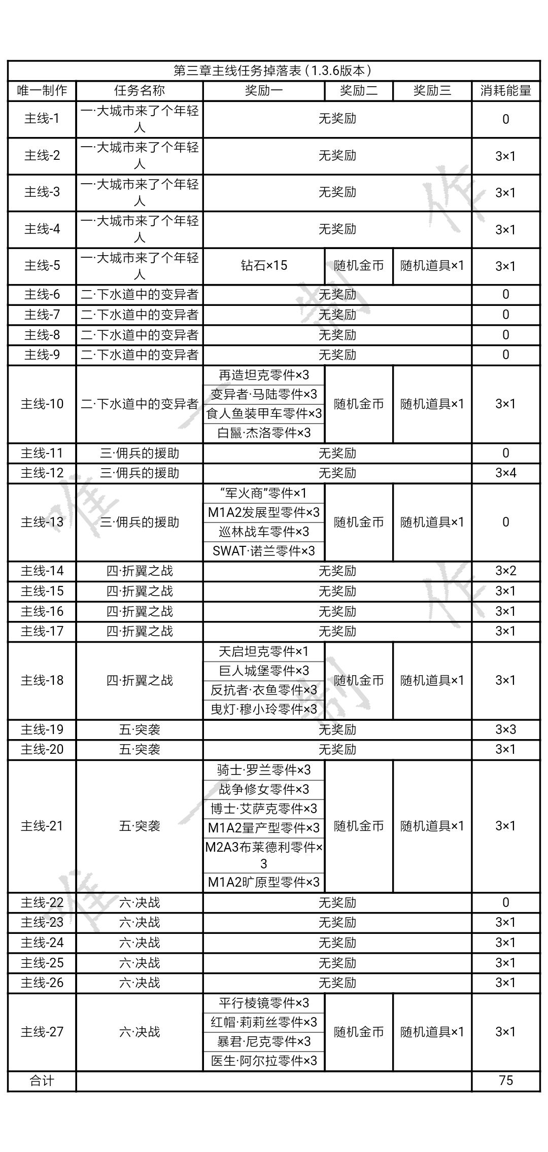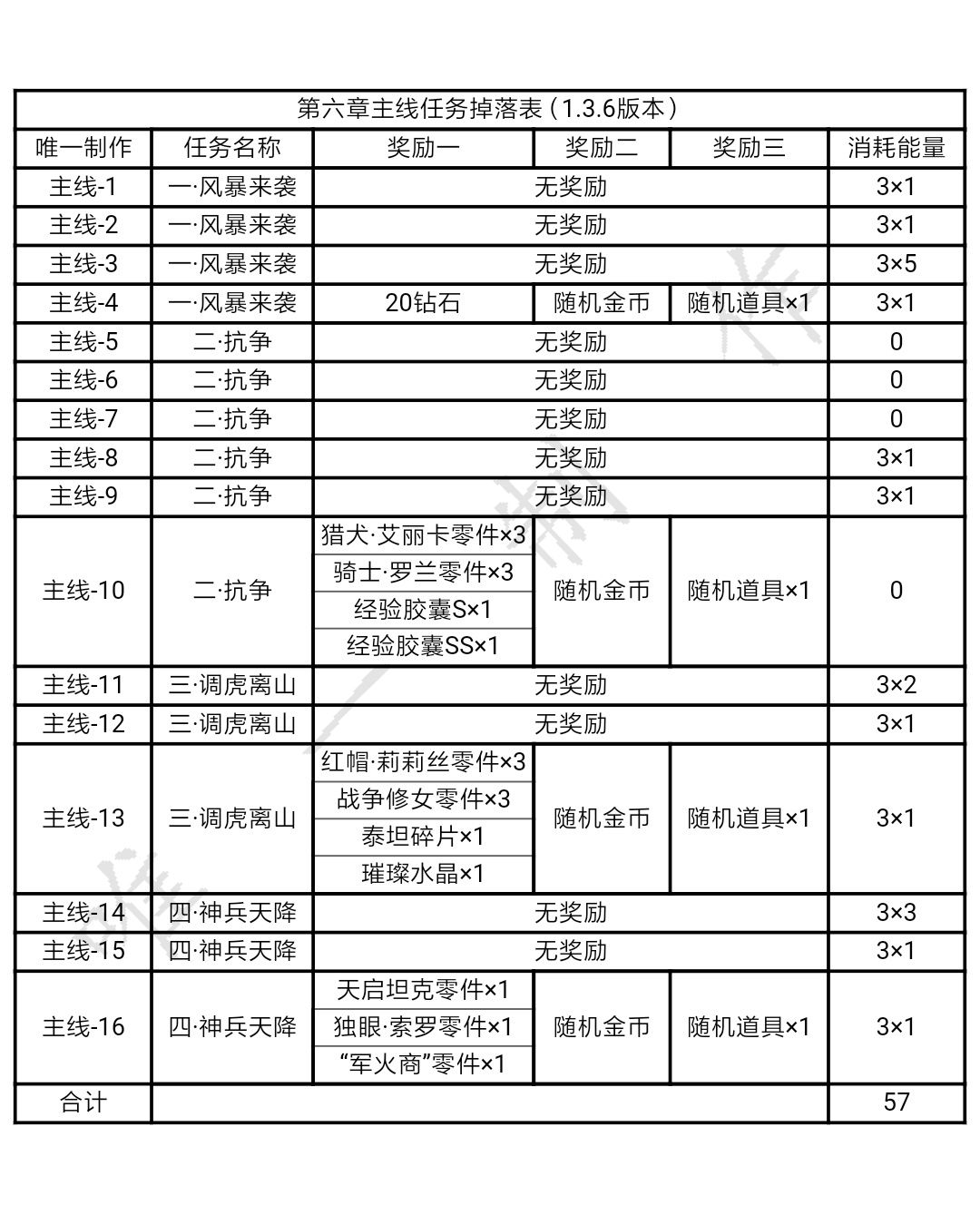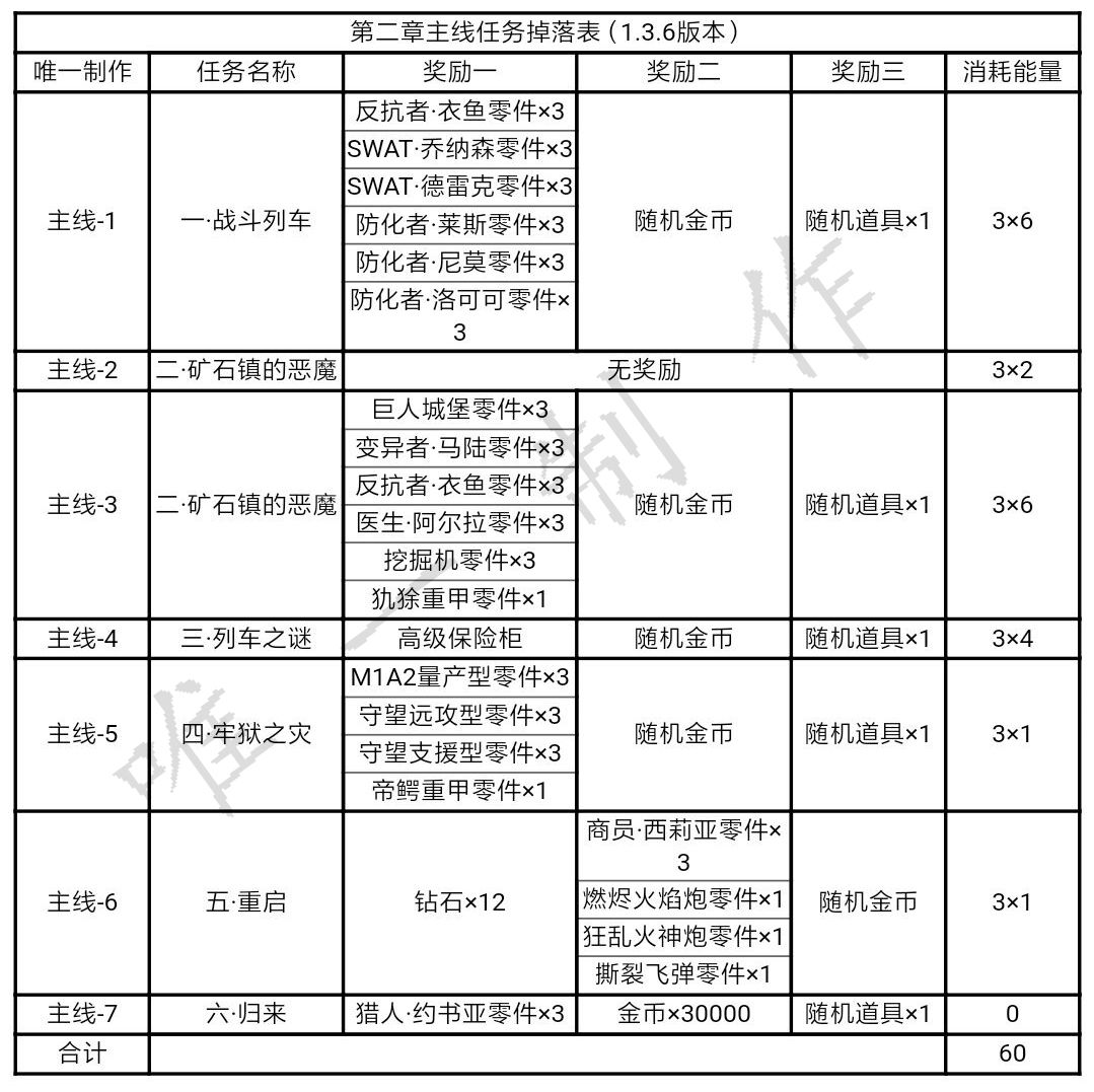 【攻略】合金机兵各个章节掉落表