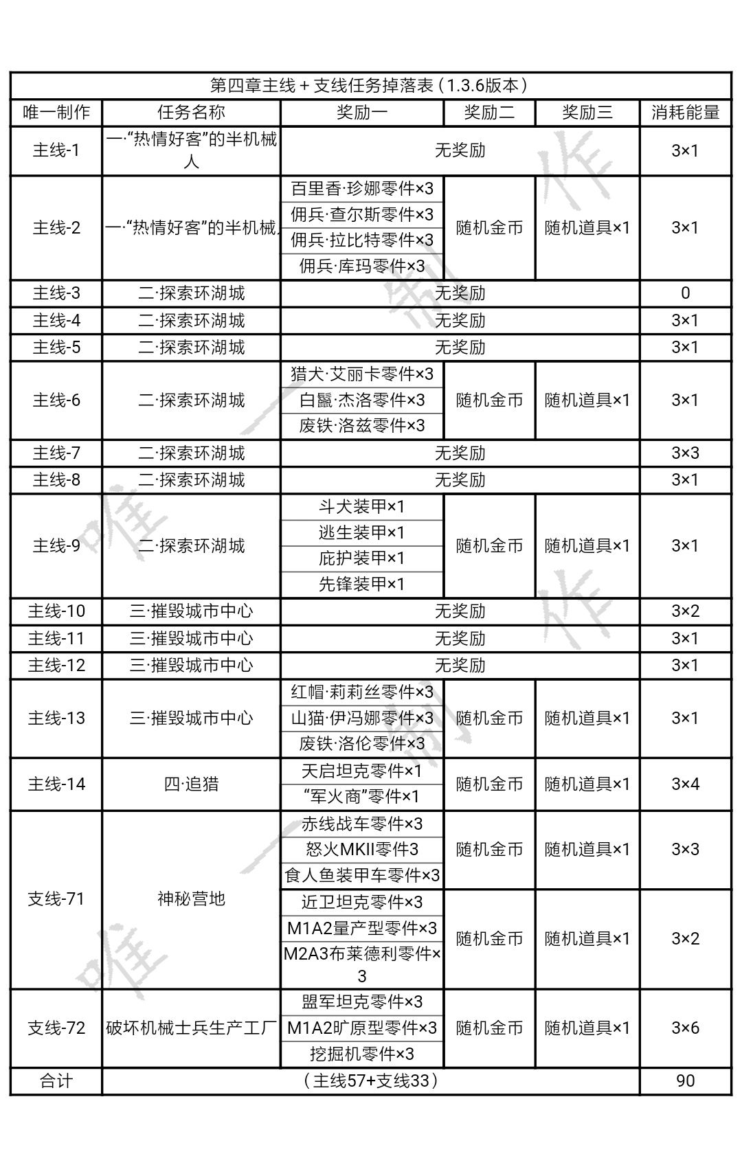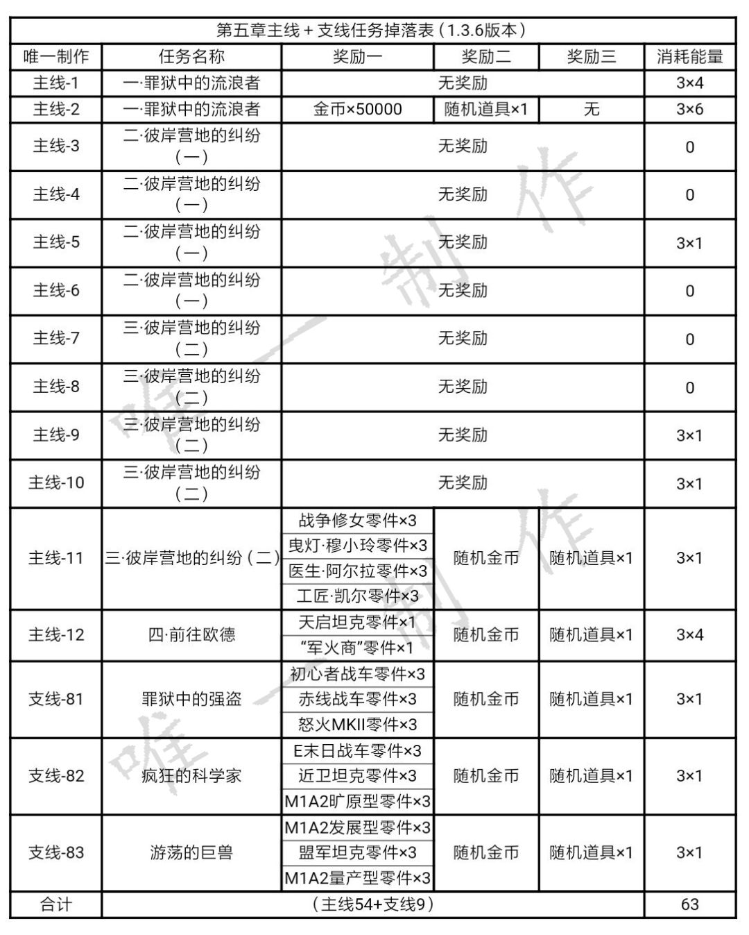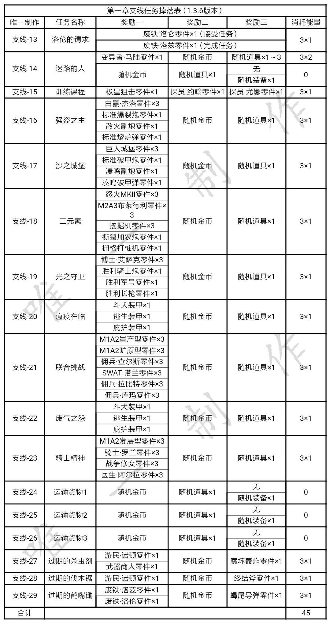 【攻略】合金机兵各个章节掉落表