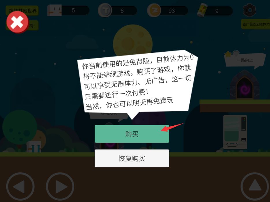 购买后即可无广告、无体力限制,如果已经购买,点击“恢复购买”即可恢复内购。