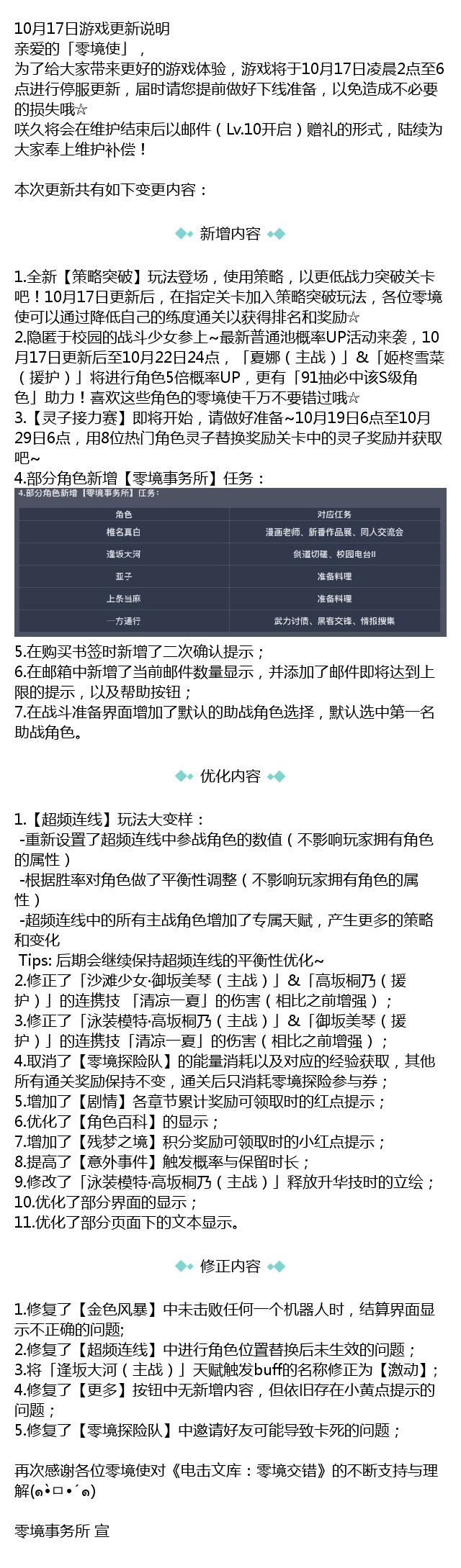 维护用时可能会根据实际情况有所调整,请各位零境使留意后续官方公告~