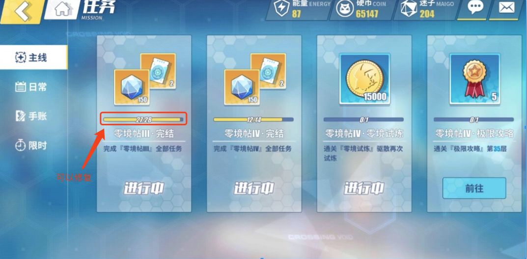 2、之前做过【限时任务I】或【限时任务II】但却没有在限定时间内完成的零境使们,将在今天(16日)重新开启下一阶段的限时任务~