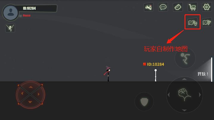 玩家自制地图按钮,《逗斗火柴人》支持火柴君们自己制作地图,每个火柴君制作地图都能在此显示。