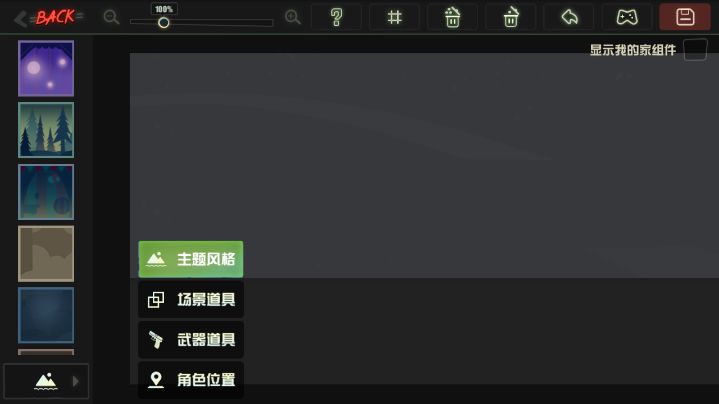 主题风格,场景道具,武器道具,角色初始位置都支持火柴君们自己建设。纵是天马行空的想法,这里都能实现。建设完成以后,点击右上角保存即可。