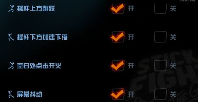 摇杆上方跳跃,,摇杆下方加速下滑加速,空白处点击开火,屏幕震动,手机震动都可以根据喜好选择开启或者关闭。