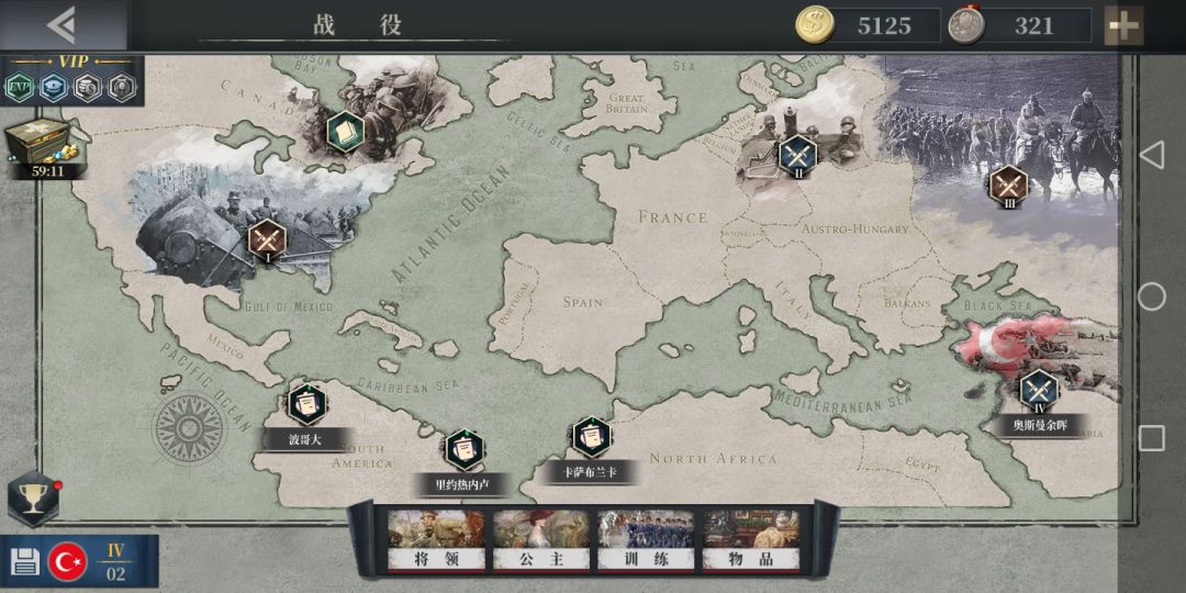 我们的尼古拉一世元帅和兴登堡元帅率领着各自的兵种在保加利亚的境地内粪斗着,在国内一群年轻有为的青年和老将贝当组成一支轻步兵准备下个月前往前线战斗着(注意这支部队一直打到伊比利亚半岛活了80回合)海军由舍尔率领着巡洋舰前线于🇬🇧奥斯曼帝国海军死磕。