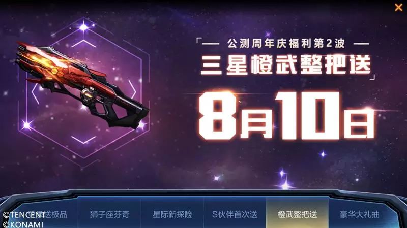 三星橙S武器免费送,全民双手拿橙武!公测周年庆活动期间,完成任务收集【宇宙探测器】即可免费兑换三星散弹枪7S哦!
