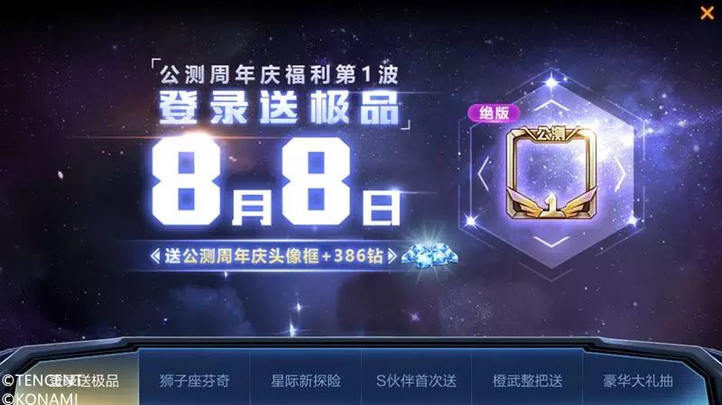 噔噔噔!本周三(8月8日)公测周年庆正式开启!累积登录就能免费得公测周年庆头像框和386钻石喔!