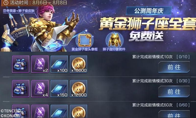 全服累计贡献1000万次且个人贡献30次即可获得:【芬奇狮子座皮肤激活卡*1+黄金狮子座头像框*1】!
