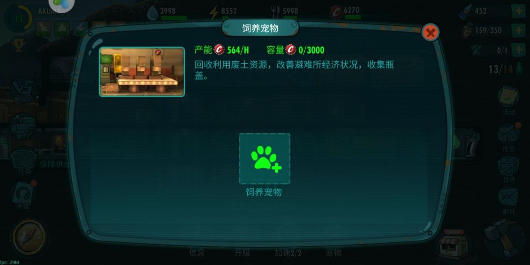 5、不要忽视了宠物。随着等级提升解锁宠物系统后,可以在资源产出房间中放置对应宠物,它也也会帮助您提升资源产出效率。