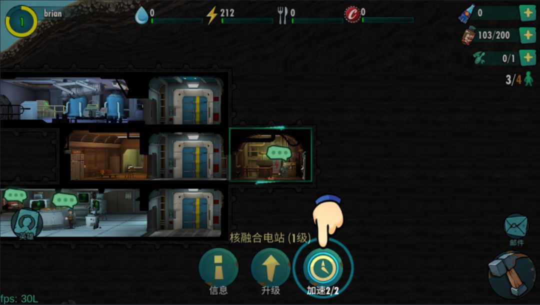 4、利用加速功能。每个资源产出房间每天有两次加速机会,一定不要浪费哦。