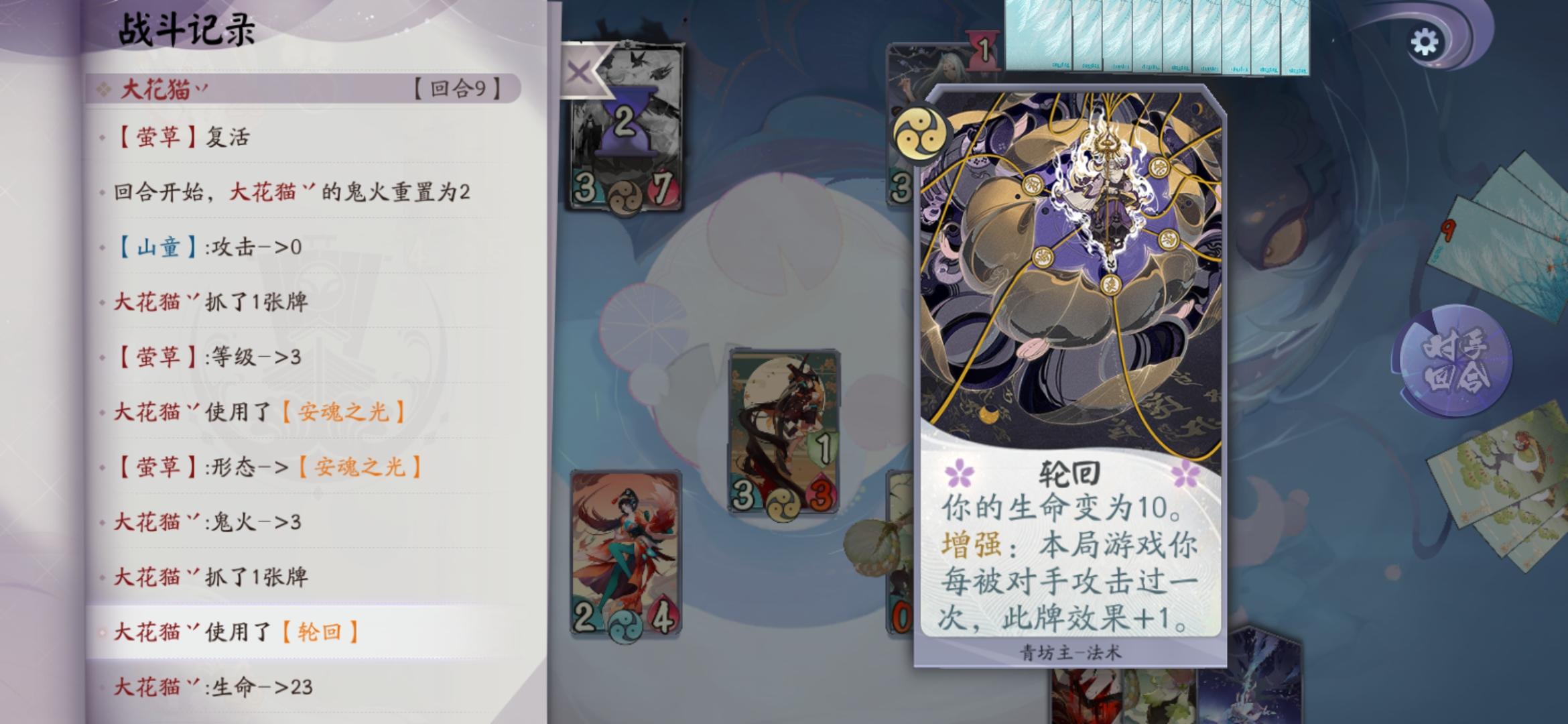 再一次抢到斩杀线后对方使用了轮回回复到23生命值,我投降了。我大概输出掉了对面两条命吧。。